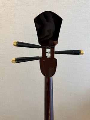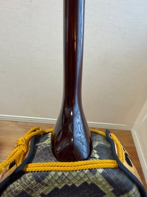 銘苅先生は基本的に棹しか作らない。胴も含めて全てやるのは、相当本人が自信を持って作った一本だ!なんてどこかのブログだかフリマで見たことがありますが、存命中にそんなことはない。三線制作頼む三線屋がいない時は受けてるよ。業者から仕入れた胴をつけてるよ、なんて言ってました。
